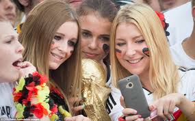 Fans cheer as an image of Germany's coach Joachim Low is seen on a giant screen